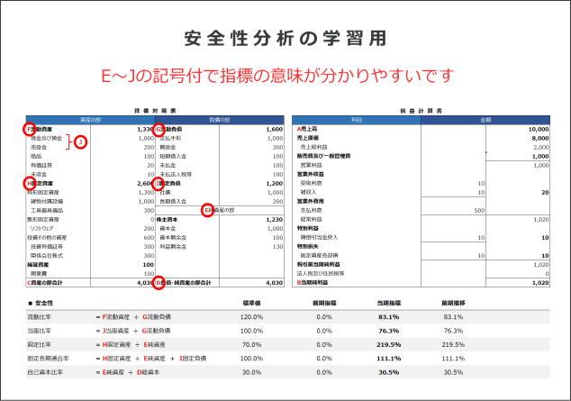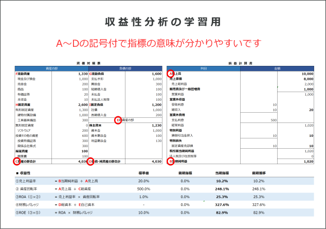 HOME > 財務分析診断シートとは、貸借対照表及び損益計算書の数字を概略的に入力するだけで主要な財務分析指標を自動計算してくれるExcelテンプレートです。財務分析診断シートと名付けました↓ 決算書と財務分析指標の算式にA~Gの記号を付けることで算式を分かりやすく示したタイプの財務分析診断シートです↓ 学習用と割り切って大胆にマークを付けたタイプの財務分析診断シートです↓ 財務分析指標の解説 Post Share Hatena LINE URLコピー 2025年2月8日 2025年3月24日 author