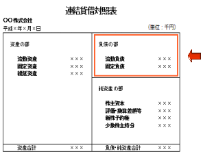 負債は、貸借対照表の赤枠部分に表示されますのでその会社が負っている負債を知りたい時はこの部分を見ればよいことになります。